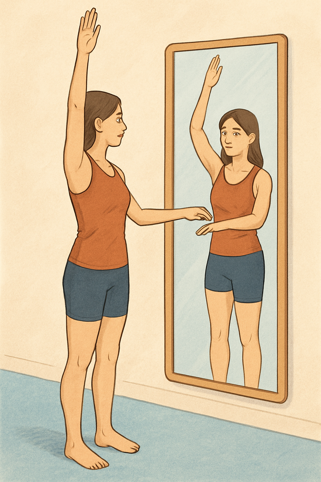 In dieser achtsamen Trockenübung aktivierst du deine Armzüge vor dem Spiegel. Du übst die Zugphase des Kraulschwimmens – langsam, kontrolliert und mit vollem Körperbewusstsein. Durch die Spiegelarbeit entwickelst du ein besseres Gefühl für Haltung, Schulterachse und Symmetrie.